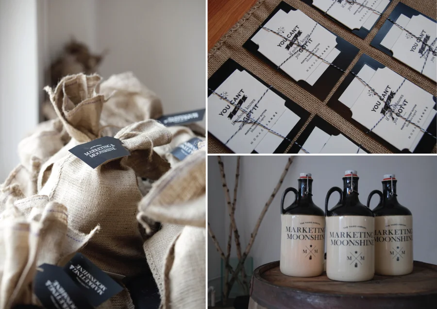 Marketing & Moonshine is an annual networking event presented by Monaco Lange. Highlights from the evening included a special performance by the Ebony Hillbilies, a presentation from the global lead of marketing at Linkedin, an award ceremony honoring marketing mavericks from Jet Blue, The Weather Channel, and Guilt Group, and of course lots of "Blue Moonshiner" custom cocktails.