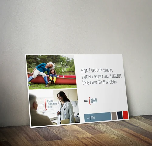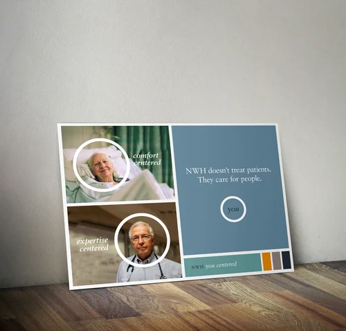 To help introduce the new NWH brand, a campaign was developed to showcase the sense of ownership and pride employees and patients feel toward the hospital. The campaign mark, bracket graphic, and supporting imagery were developed to tell the NWH story from the perspective of doctors, staff and patients at the hospital.