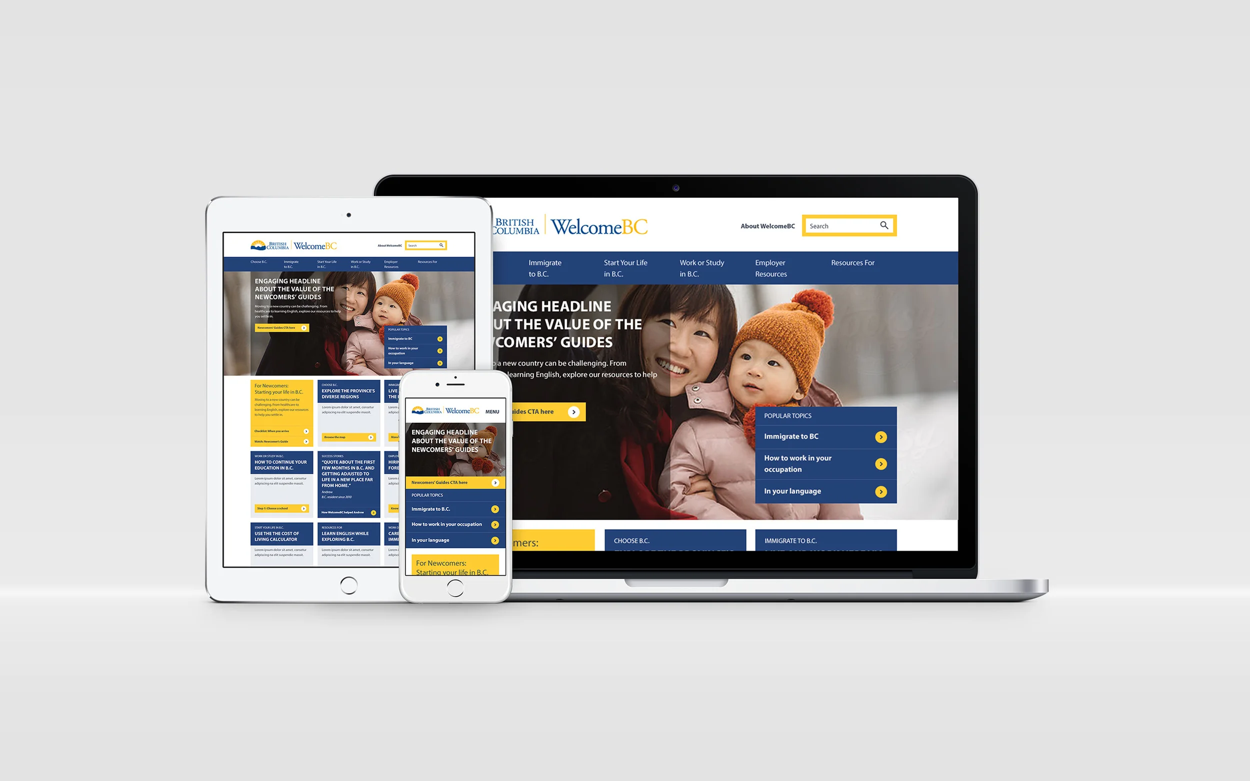 WelcomeBC (WorkBC's sister site) helps newcomers navigate the immigration process and get settled into their new lives. Although the site contained a lot of useful information—complex navigation, redundant content and an outdated site design made it difficult for users to find what they needed. Our solution was a responsive redesign that could accommodate updated content and a streamline navigation system that would help users access WelcomeBC's valuable content much more efficiently.